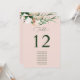 Beautiful table number cards are the perfect tabletop decor to keep your wedding, engagement party, rehearsal dinner or event organized. These classic table numbers are personalized with your guests' names to make seating a breeze. The design details have soft pastel tones and greenery modern watercolor florals in shades of peach, white, cream ivory, sage and a brighter deeper green. These custom table cards coordinate with our full botanical boho floral collection of stationery and event paper goods.