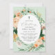 Beautiful Christening baptism invitations featuring an elegant modern neutral pastel tone watercolor botanical floral greenery frame in soft earth tones of peach, orange, soft blush, yellows, and lots of shades of green from sage green to bright and deeper greens. Your personalized details are displayed in an elevated typography layout that puts the sweet baby girl front and centre.