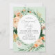 Beautiful engagement party invitations featuring an elegant modern neutral pastel tone watercolor botanical floral greenery frame in soft earth tones of peach, orange, soft blush, yellows, and lots of shades of green from sage green to bright and deeper greens. Your personalized details are displayed in an elevated typography layout that puts the guest of honour front and centre.