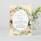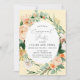 Beautiful engagement party invitations featuring an elegant modern neutral pastel tone watercolor botanical floral greenery frame in soft earth tones of peach, orange, soft blush, yellows, and lots of shades of green from sage green to bright and deeper greens. Your personalized details are displayed in an elevated typography layout that puts the guest of honour front and centre.