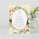 Beautiful baptism christening invitations featuring an elegant modern neutral pastel tone watercolor botanical floral greenery frame in soft earth tones of peach, orange, soft blush, yellows, and lots of shades of green from sage green to bright and deeper greens. Your personalized details are displayed in an elevated typography layout that puts the sweet baby girl front and centre.