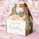 Beautiful wedding gable favour boxes decor to share your special day with your guests. These classic custom printed treat boxes are perfect to decorate your reception or ceremony space and delight your guests with thank you party gifts, sweets, and treats. Soft pastel tones and greenery modern watercolor florals in shades of peach, white, cream ivory, sage and a brighter deeper green. This personalized event supplies accessory coordinates with our full botanical boho floral collection of stationery and event paper goods.