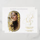 Botanical Cherry Blossom Flowers Oval Frame Photo Graduate Gold Metallic Foil Invitation Card.