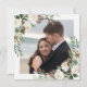 These elegant holiday wedding save the date cards feature rustic watercolor flowers with pinecones, branches, berries, leaves, and white roses. Your photo appears on the back with more flowers.
