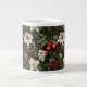 Contemporary classic floral pattern from poinsettia Christmas flowers, berries and branches in red white and green