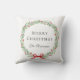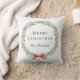 Botanical Christmas Wreath Modern Script Throw Pillow