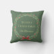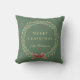 Botanical Christmas Wreath Modern Script Throw Pillow