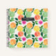 Watercolor inspired pattern with illustrations of pink flowers, orange, lemon, lime, and grapefruit citrus with botanical leaves.