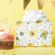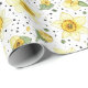 Fresh botanical floral pattern wrapping paper featuring illustrated yellow and white daffodils with green leaves, paired with modern sage green circles and playful black dot accents on a crisp white background. The mix of floral illustration and retro-inspired geometry creates a stylish, contemporary look. Ideal for floral art lovers, modern décor fans, and botanical design enthusiasts. A thoughtful gift for gardeners, creatives, and lovers of clean, artistic patterns, perfect for spring styling, Easter season, and everyday modern décor.