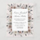 This design features an elegant floral wreath of rose and leaves and pine needles in watercolor palette of dusty rose, ivory, cream and shades of grey with your wedding details displayed in an elegant combination of cursive and capital letter over a white frame. Perfect for formal celebration, or elegant wedding with romantic goth vibes.
