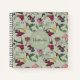 This Botanical Floral Hummingbird Pattern Sage Green Notebook custom hardcover notebook features a hummingbird and floral pattern with hand-drawn exotic flowers, birds, and foliage on the front and back covers, all on an elegant sage green background. Personalize with your monogram and name for a unique touch. Available with blank, wide-ruled, or college-ruled pages and your choice of spiral colour.