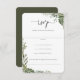 Botanical Foliage Olive Green, wedding rsvp card with allergy note. Chic signature script graphic "rsvp" title and olive green colour backing.