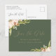Elegant watercolor botanical forest foliage and garden floral arrangements, wedding save the date postcard. Card features elegant calligraphy "Save the Date", on front and back.