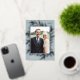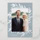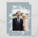 This modern holiday photo card features a hand-drawn foliage frame in silver foil on a chic grey blue background. The typography is classic and elegant. All colours are customizable - background colour, text colour, even the foil colour. Add the "wow" factor with a real foil holiday card this year!