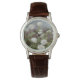 I like the illustrative watch with the lady on it. It is a great reminder that I am blessed and it has a very sturdy leather band. The colors are true and vibrant. Love the color of the Leather also. Very nice.