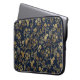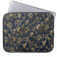 Botanical Gold Flowers Blue Pattern Laptop Sleeve