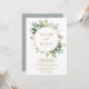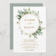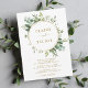 This wedding invitation features painted watercolor eucalyptus greenery, green leaves and a gold circular frame. For more advanced customization of this design, Please click the "Customize further" link. Matching items are also available.