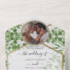 All in one Modern and Elegant Wedding invitation with a custom photo of the couple. A special invitation that makes the process of inviting people much easier. the invitation is fully customizable depending on your needs and preferences and it comes with a floral, flowery, bouquet, and botanical and greenery accent. We do also offer a variety of other all-in-one invitation for your wedding in our store that comes in glitter, foliage, diamonds, confetti and flowers of all types, gold decorated, and much more.