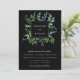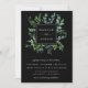 Modern botanical frame, wedding invitation. Elegant watercolor greenery in chic shades of green and blue. Card features solid black background colour.
