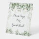 Impress your guests with our meticulously designed wedding pedestal sign, featuring delicate botanical elements and shimmering gold accents.