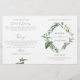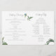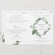 Program for wedding celebration with delicate greenery botanical leaves, gold geometrics and calligraphy text.