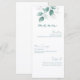 Add a refined botanical touch to your reception tables with this elegant watercolor eucalyptus wedding menu card. Soft green leaves cascade from the top of the design, creating a graceful, nature-inspired frame that perfectly complements the clean and modern layout. The delicate greenery and airy typography give the menu a timeless, romantic feel while keeping the focus on your beautifully curated meal.