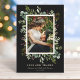 Botanical Greenery Winter Wedding Photo Black Thank You Card
