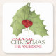 Botanical Holiday Elegant Merry Christmas Name Square Paper Coaster