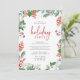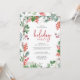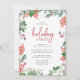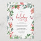 Invitation à la fête des Fêtes Botaniques. Cette élégante invitation à la fête de vacances présente un cadre magnifique de verdure aquarelle peinte à la main et de baies rouges entourant la police véritable de feuille d'or. Le dos de la carte comprend un motif design assorti.