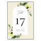 Elegant botanical lemons, leaves and blossoms arch frame, table number card. When ordering table number cards, each card must be numbered and ordered individually.