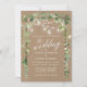 Watercolor Botanical Greenery, Eucalyptus Leaves, Modern Calligraphy, String Lights and Mason Jars, Wood Frame, Kraft Wedding Invitation Card