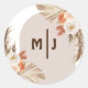 Botanical Monogram Boho Pampas Grass Wedding Classic Round Sticker