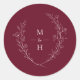 Botanical Monogram Burgundy Wedding Elegant Favor Classic Round Sticker
