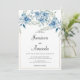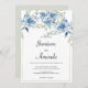 Botanical navy blue mint floral wedding invitation