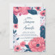 Botanical navy blue pink watercolor floral wedding invitation