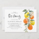 Invite family and friends to your event with this botanical christening invitation. It features watercolor illustrations of oranges, lemons, orange blossoms and greenery with a matching citrus pattern. Personalize by adding a name, date, time, venue, address and other event details. This citrus invitation is perfect for garden and summer christenings. Matching items are available.