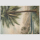 Elegant vintage botanical style illustration vertical King palm tree and desert island oasis landscape design, with script calligraphy handwriting, advertising ephemera, leaf foliage greenery and a aged parchment background.  This collage is part of a series of coordinating images perfect for utilizing on painted furniture, cabinet doors or to create sophisticated wall art crafting.  It was graphically designed by internationally licensed artist and designer, Audrey Jeanne Roberts, copyright.