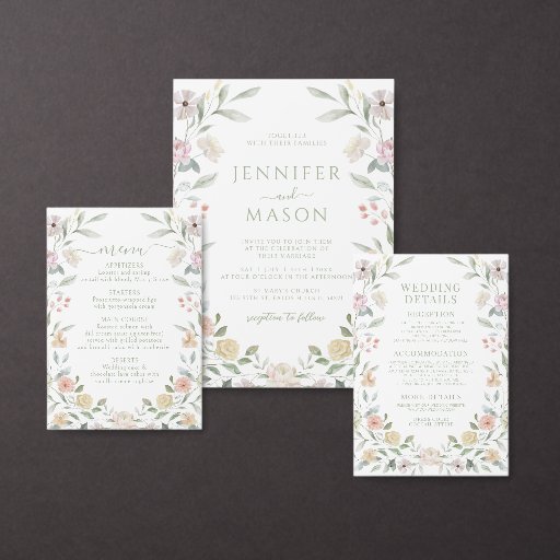 Botanical Pastel Flower Wreath Wedding Invitation