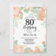Botanical Peach Floral 80th Birthday Invitation. Floral Pink Peonies Birthday Invitation for Women. Watercolor Floral Flower. Elegant Pink Rose and Peony Flowers. Adult Birthday. White Background. Black and White. 13th 15th 16th 18th 20th 21st 30th 40th 50th 60th 70th 80th 90th 100th, Any Ages. For further customization, please click the "Customize it" button and use our design tool to modify this template.