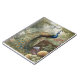 vintage botanical painting of a peacock standing on stairs in an English garden surrounded by pastel flowers