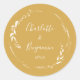 Dusty Yellow Floral Wreath Monogram Personalized Names and Wedding Date Script Calligraphy Classic Round Sticker