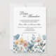Botanical pink blue spring wildflowers wedding invitation