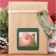 A pretty pink cabbage rose with a small rosebud just starting to open framed in pink. An elegant close-up from a vintage botanical painting on a hunter green background with a canvas texture. Click Customize It to add your name or message.