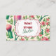 A soft, botanical-inspired stylist business design featuring lush pink florals, greenery, and golden salon tools woven throughout the background. The ornate center frame provides a clean space for any stylist’s name and contact details, creating a fresh, feminine, and professional aesthetic. Perfect for salons, independent stylists, and beauty professionals who want a charming yet polished brand identity. Fully customizable to match any business style.
