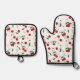 Botanical Red Cherries Greenery & Cherry Blossoms Oven Mitt & Pot Holder Set