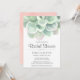 Botanical bridal shower invitation with a large pastel sage green watercolor succulent at the top and your details in a soft grey font. The backside has a pink watercolor wash. The large succulent at the top makes for a simple design and has a great natural element to it. These invitations are perfect for a desert themed bridal shower in the spring or summer.