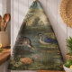 Botanical scene of blue crane by a river kitchen towel