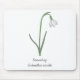 A mouse pad with a Botanical Snowdrop Flower illustration in Pastel colours and a customizable text at the bottom: perfect for a birthday gift to a girl who love flowers. Snowdrop is the January birth flower and the flower of Capricorn.