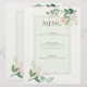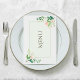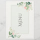 This romantic wedding menu showcases soft pink watercolor floral art arranged delicately within a botanical frame detail, creating an elegant garden wedding motif. The pink floral wedding menu card design features subtle blush pink accents and a harmonious soft pink colour scheme, perfectly complementing your pastel event theme. With a classic timeless wedding aesthetic, this graceful menu card offers a refined way to present your formal reception meal details while coordinating beautifully with vintage pink flowers inspired design and romantic botanical floral arrangement elements.