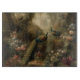 vintage botanical painting of three peacocks in an English garden surrounded by pastel flowers